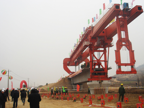 以及生产更新运架产品能架设跨度40M高速铁路箱梁的:SXJ1000T/40M一跨式架桥机(配套攀爬式运梁车可以实现过隧道零距离架梁)和攀爬式运梁车。并能对现有32M分体式运架设备进行改造,改造后能实现高低位架设跨度40M高速铁路箱梁(高位改造不能过隧道,把原架桥机改造一跨式,把原运梁车增加2轴。低位改造能过隧道架梁,把原架桥机改造一跨式低位,把原运梁车改成攀爬式运梁车并增加二台喂梁台车实现过隧道架梁)。