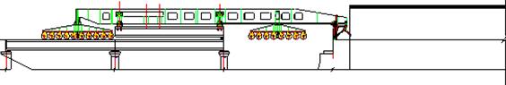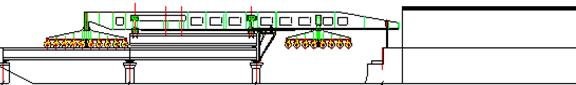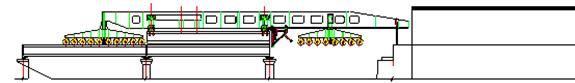 2、按前述正常架梁作业程序使辅助支腿上桥台并准确就位:
